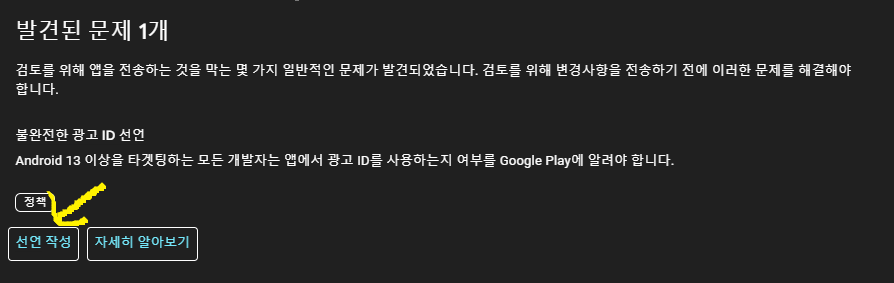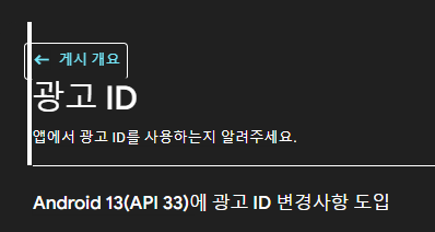 불완전한 광고 ID 선언Android 13 이상을 타겟팅하는 모든 개발자는 앱에서 광고 ID를 사용하는지 여부를 Google Play에 알려야 합니다.