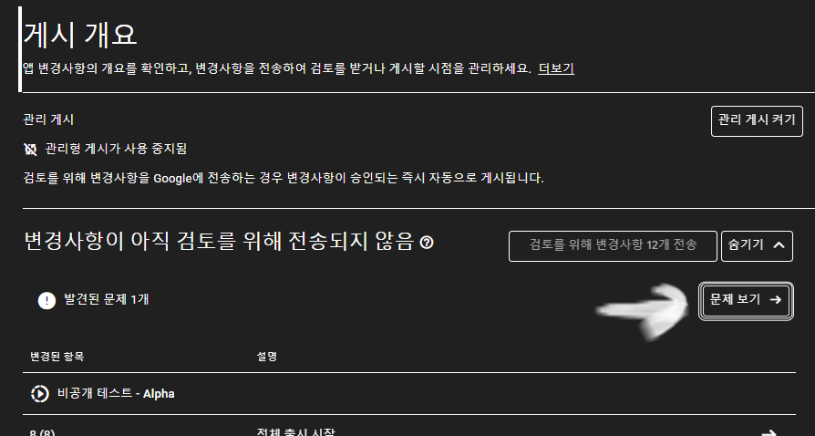 비공개 테스트 까지 올리려고 하는데 발생했구요