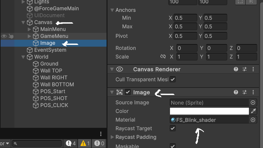 8. 캔버스의 이미지에 셰이더를 박는다.