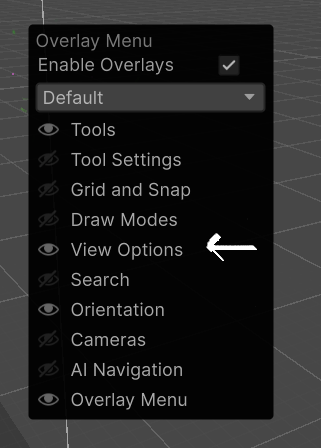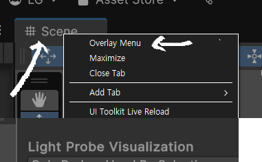 Scene 뷰 이름에다 우클릭하면 Overlay Menu 라는게 있다. 누르자