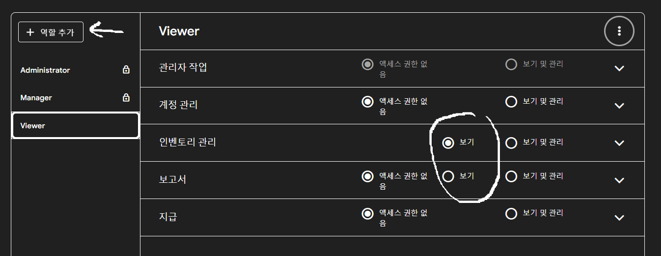 역활은 고친 후에 저장해야 합니다.