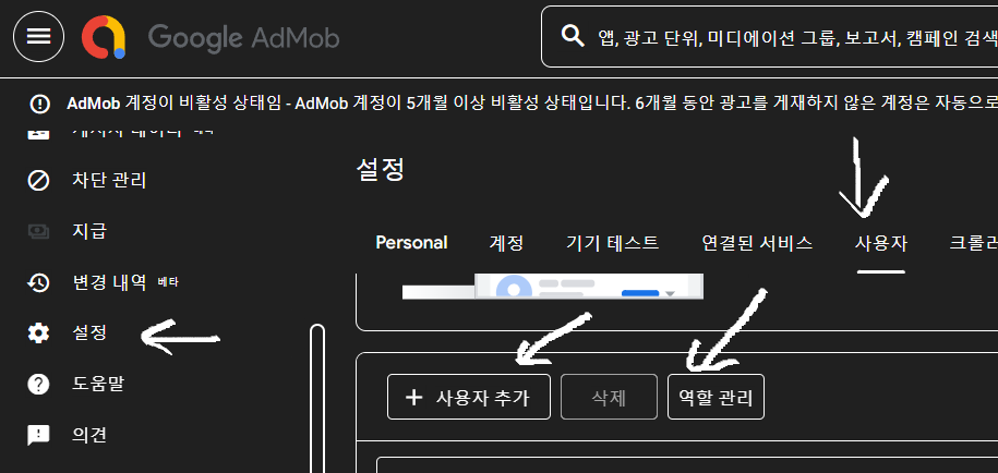 초대할 게정은 admob 에 가입되지 않아야하는군요