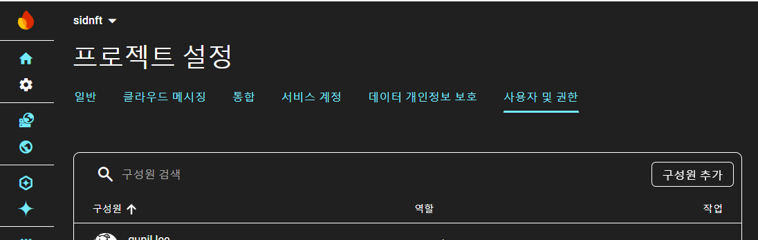 파이어베이스 한 프로젝트를 여러면이 관리를 해야할꺼 같은데 UI 확인중에 찾았습니다.