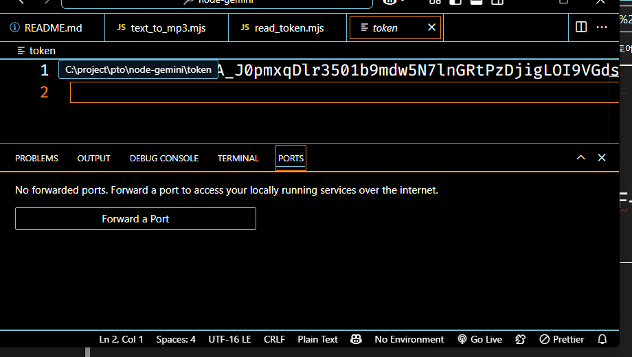 gcloud auth print-access-token 저장을 했는데 UTF-16 으로 저장되었다. / UTF16 문자열 읽기 / node.js