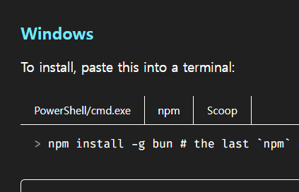 설치방법설치문서: https://bun.sh/docs/installation
