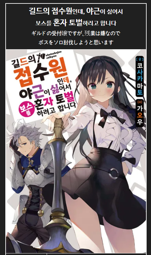 이 애니의 내용은 빨리 퇴근하려고 길드 접수원이 던전을 토벌해버리는 것으로 시작되는데