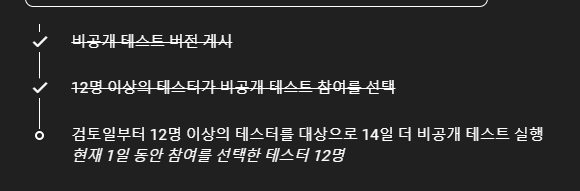 출시하려고 했으나 테스터로 14 일 + 14일 테스트 기간을 채워야합니다.