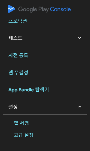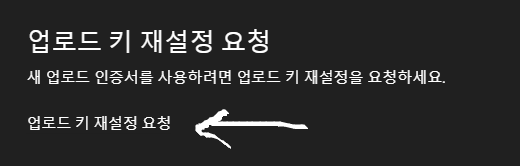 메뉴위치는 앱선택 -> 테스트 및 출시 -> 설정 -> 앱 서명 -> 업로드키 재설 정 요청