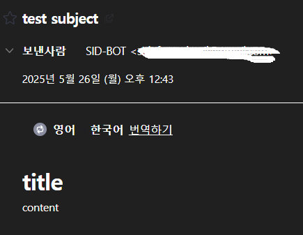 받을 사람 메일 주소를 고치고 명령어를 실행해본다.