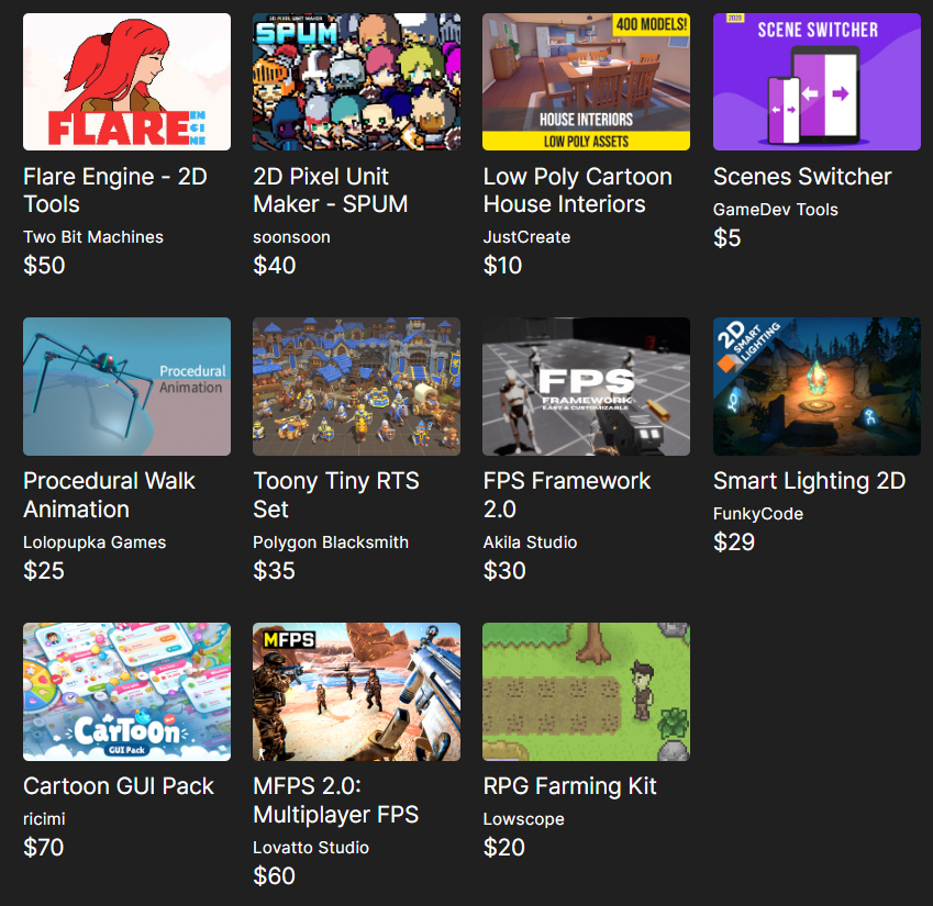 Unlock a bundle of top-rated assets, including tools for 2D and 3D design, FPS frameworks, RPG kits, and more—perfect for projects with minimal coding required.