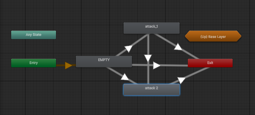 를 SubStateMachine 로 별도로 만들어서 외부에서 섞는 방법입니다.SubStateMachine 안에서는 입구와 출구를 이용해야하기 때문에