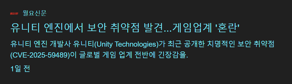 유니티 보안 취약점 발견으로 새 버전으로 빌드 해야합니다. / 바이러스가 발견됨 문제 해결 방법투자 2025. 10. 8. 16:07728x90반응형