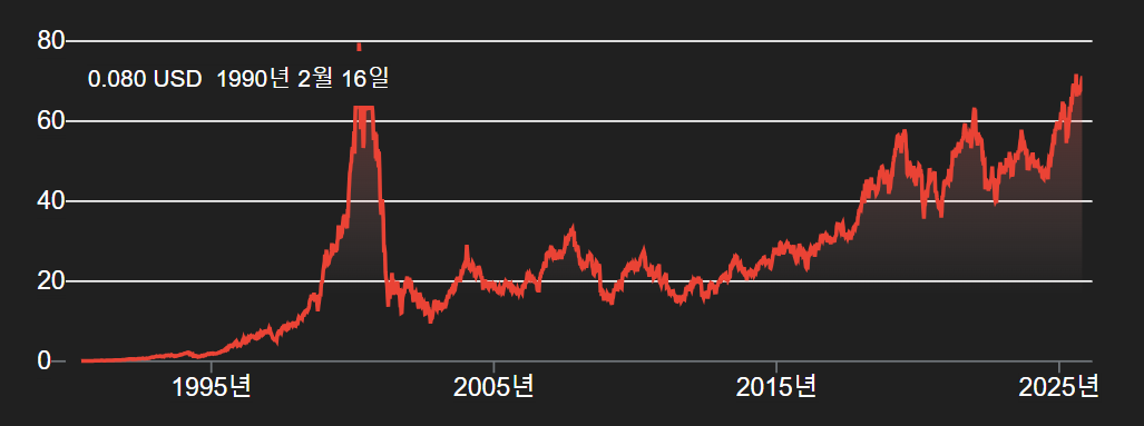 2009년 아이폰 탄생 시점부터 다시 투자했어도 나쁘지않은 상승율이네요