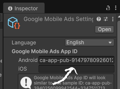 일단 빌드가 잘되어야하기 때문에 유니티에서 구글 애드의 id 가 들어가줘야합니다.