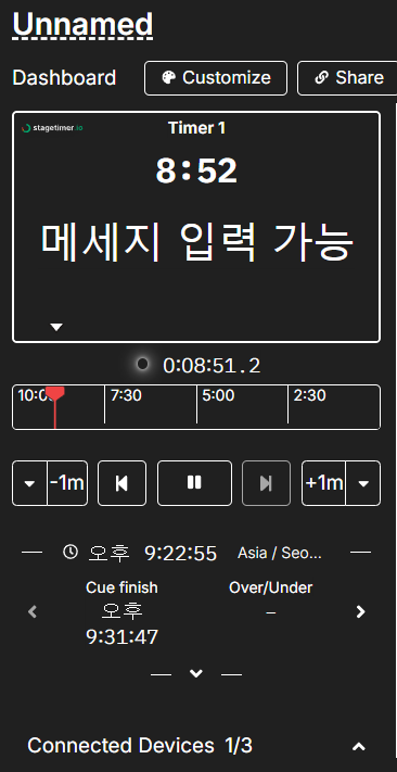 Show a fullscreen timer to your presenter while you control it from another device. Runs in the browser. Basic version is free. Works on all screen sizes.
