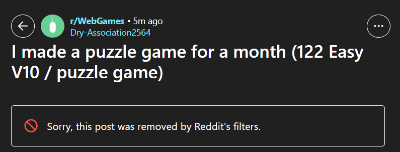 r/DestroyMyGame - 혹독한 피드백을 받아 게임을 개선하고 싶은 개발자에게 적합한 서브레딧입니다.특수 주제 서브레딧