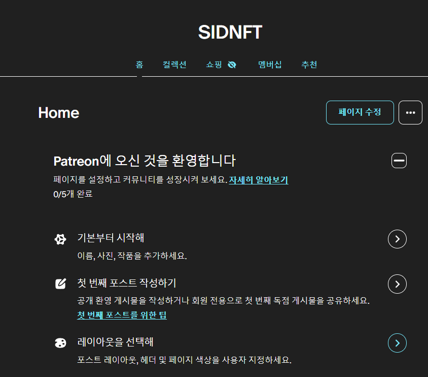 일단 제꺼 주소: https://www.patreon.com/c/SIDNFT