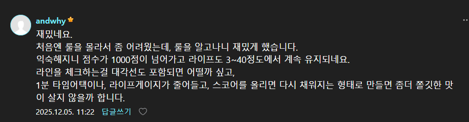 게임 링크: https://play.unity.com/en/games/fb8df491-0bdd-417e-88b8-af692eb40f42/122-easy-v11