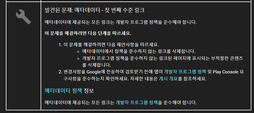 • (해결됨) 발견된 문제: 메타데이터 - 첫 번째 수준 링크 / 구글 플레이 스토어 / 동영상에 링크 제거