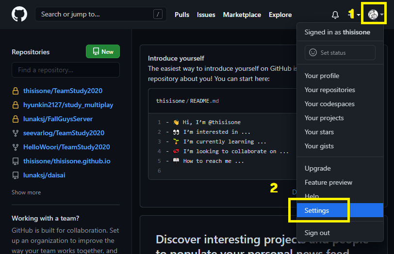 2. ssh의 id_rsa.pub (공개키) 를 github 에 등록한다.