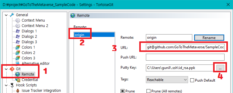 7. 5번에서 생성한 ppk 를 등록하고 (그림의 4번 버튼 눌러요)