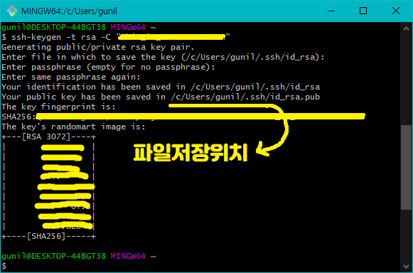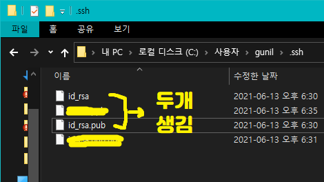 명령어: ssh-keygen -t rsa -C "내 메일 주소"
