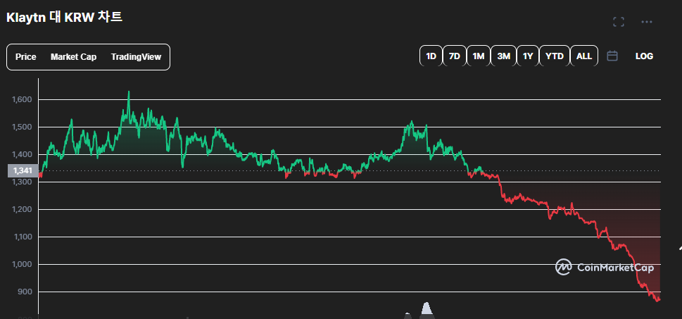 클레이튼의 현재 가격은 874원이군요. 클레이튼만의 문제는 아니고 최근 다들 내리고 있긴합니다.