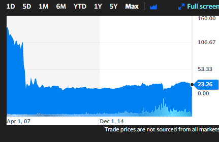리먼사태 1년전 2007년 1월에 상장해서 2년만에 $135 ➡️ $ 23 로 가버렸군요