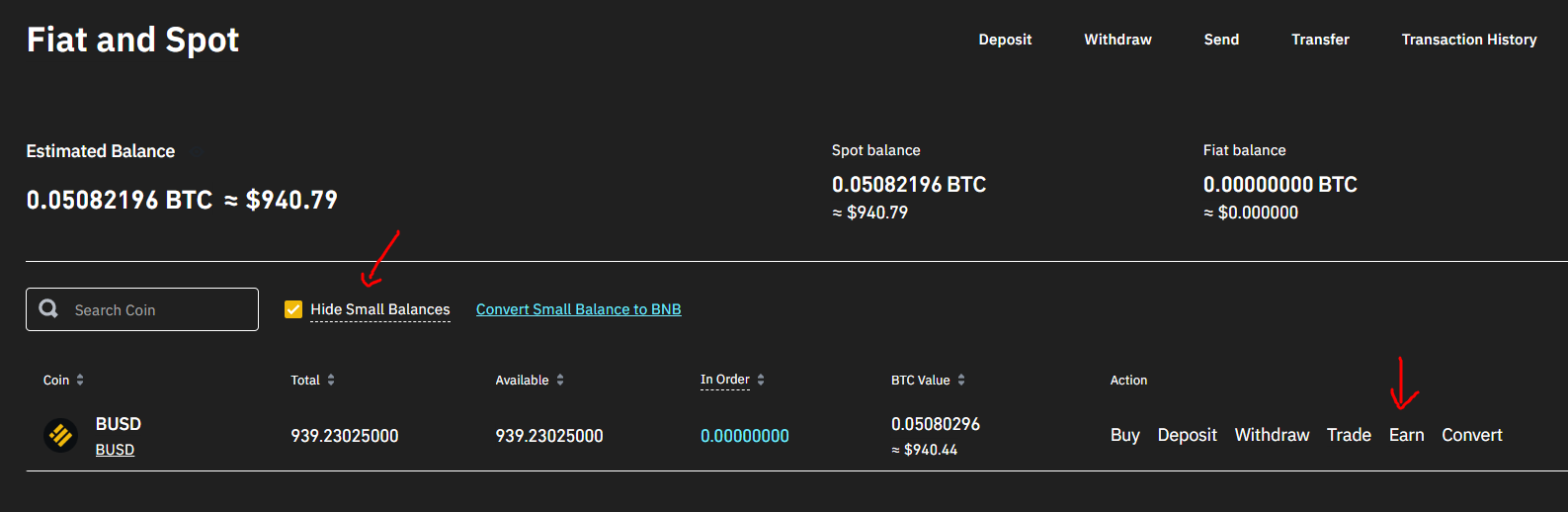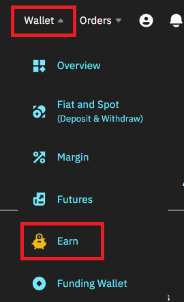 예금을 원하시는 코인에서 Earn 을 누릅니다.