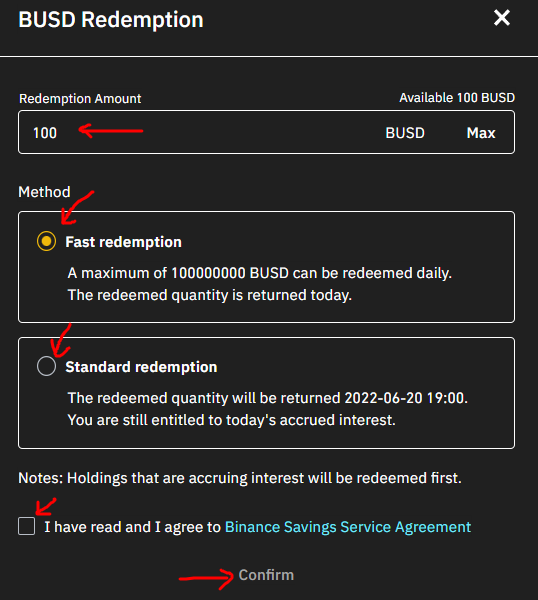 출금방법에서 Fast redemption 은 바로 빼는거구요 오늘자 이자는 못받습니다.