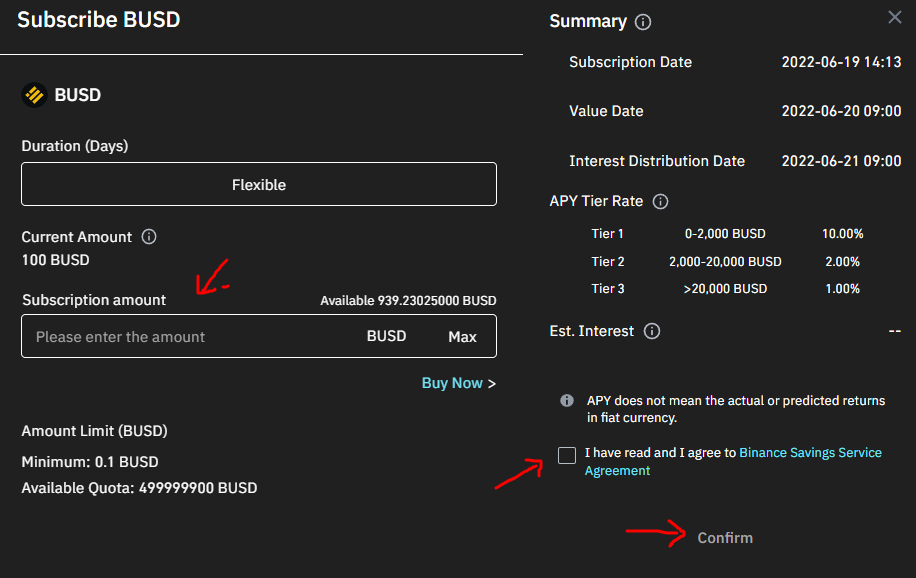이런 창이 뜨는데요 Subscription amount 에 얼마나 예치할지 정합니다.