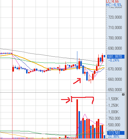 갑자기 급락하길레 빨려들어가서 저점에서 매도 하는 불상사가 생겼습니다.