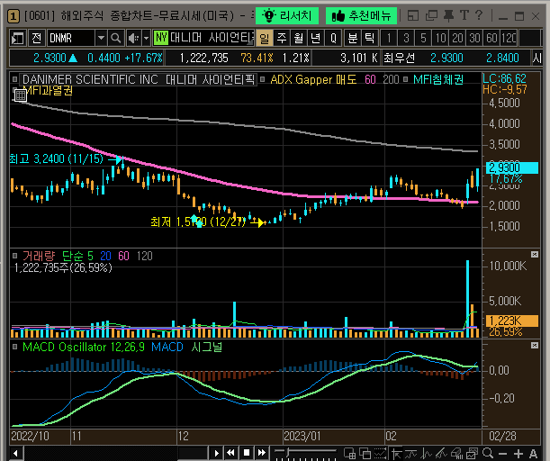 2023-03-01 미국장 시작전입니다. 다니머의 차트가 아무래도 컵핸들 모양이라 주시중입니다.
