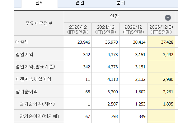 PER 로 환산하면 2022년 15 2023년 10 입니다.