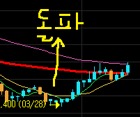 이런식으로 평균선 두개가 동시에 돌파되는 차트 기대해봅니다.