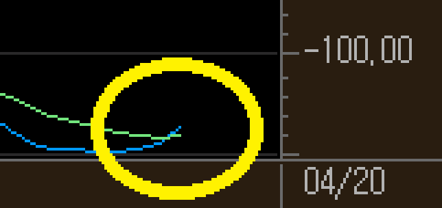 오늘 상황이구요 아래쪽에 동그라미가 MACD 선이 교차하는 부분입니다.