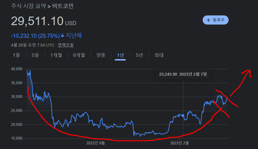 비트코인인데요 1년째 조정받고 있습니다. 대충 핸들나오는 중으로 보고 있습니다.