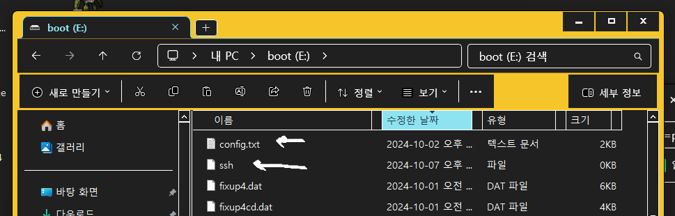 위에 sd 카드에 ssh 파일 만들기를 못했다면
