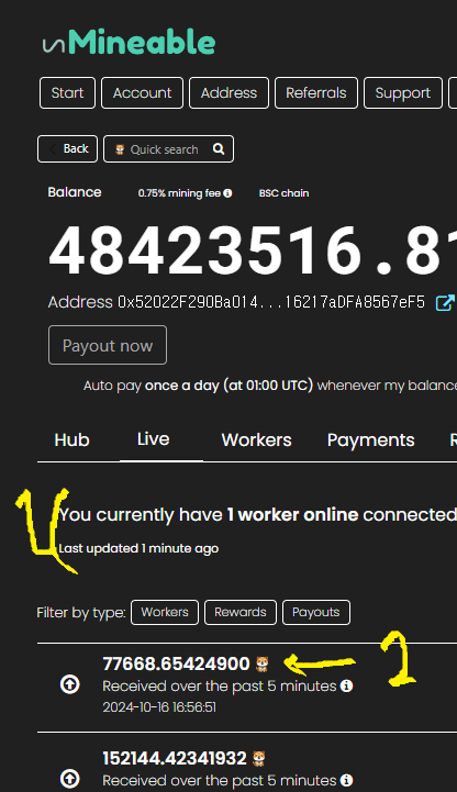 1번은 내 채굴기가 몇개 돌아가는 지 알려줍니다. 컴퓨터가 많다면 많이 표시되겠죠