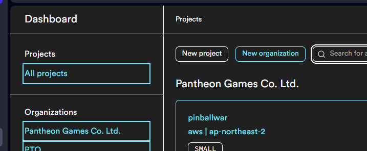 DASHBOARD 로 가시면 new project 옆에 new organization 이라고 있습니다. 이버튼 누르시면 됩니다.
