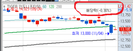 HTS 로 보니 배당락 이후 급격히 빠졌네요