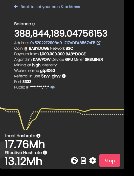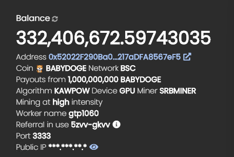 과거 채글 체험글: 베이비도지코인 채굴 5주차 기록 17% 달정중 / BABYDOGE