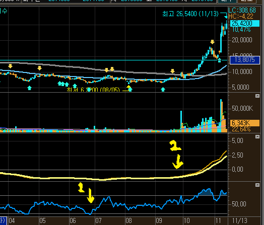 그러고 보니 그 근처에 거래량이 크게 증가하는것을 보실 수 있습니다.