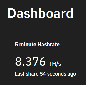 8.3 TH/s 뽑는 중입니다.