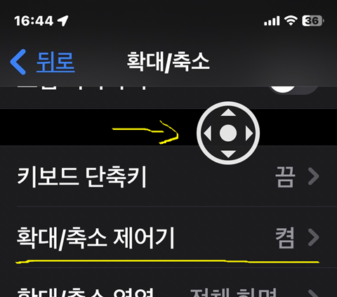 이걸 켜면 화면에 동그란 제어기가 나옵니다.