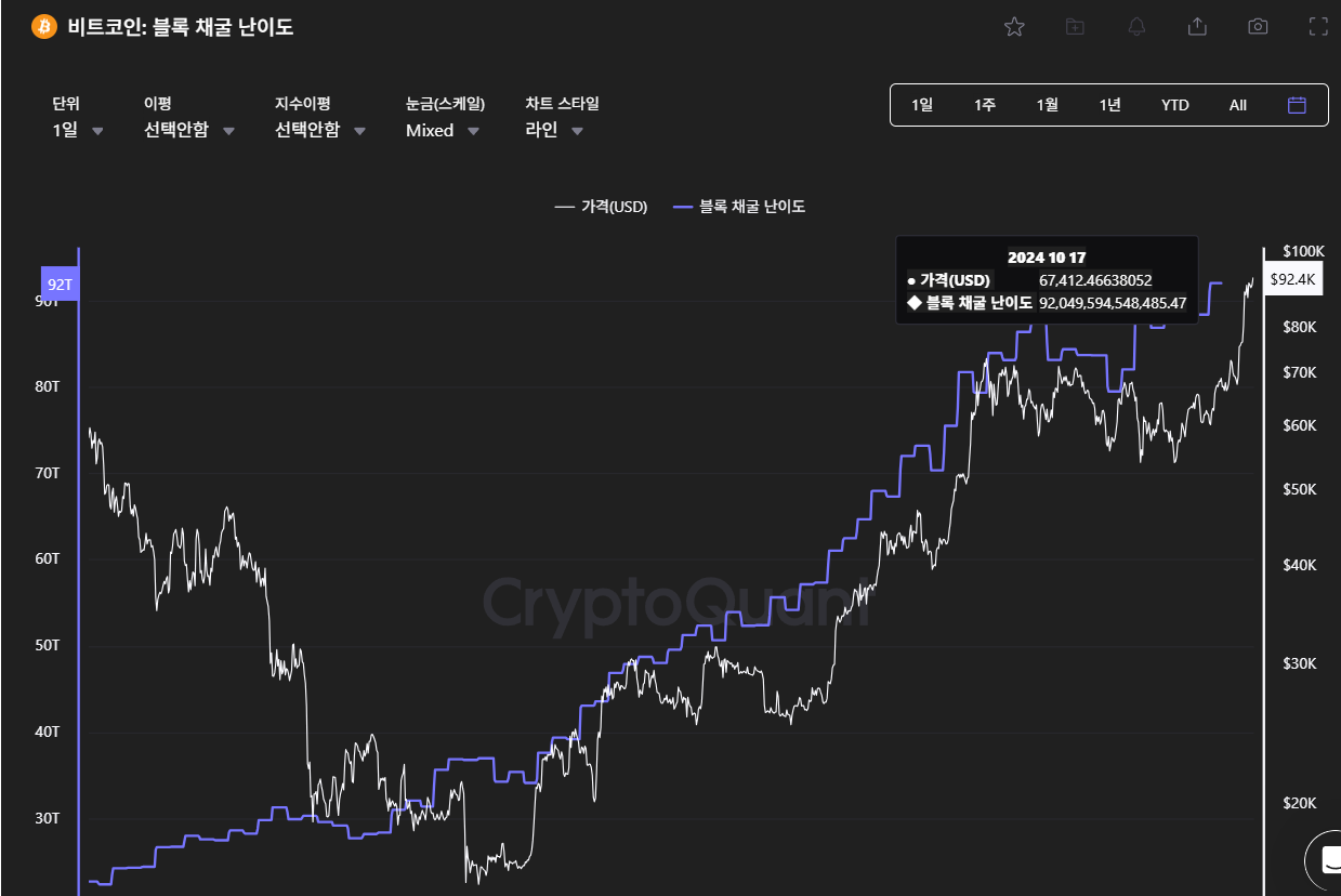 비트코인: 블록 채굴 난이도 차트: 비트코인: 블록 채굴 난이도 | 크립토퀀트